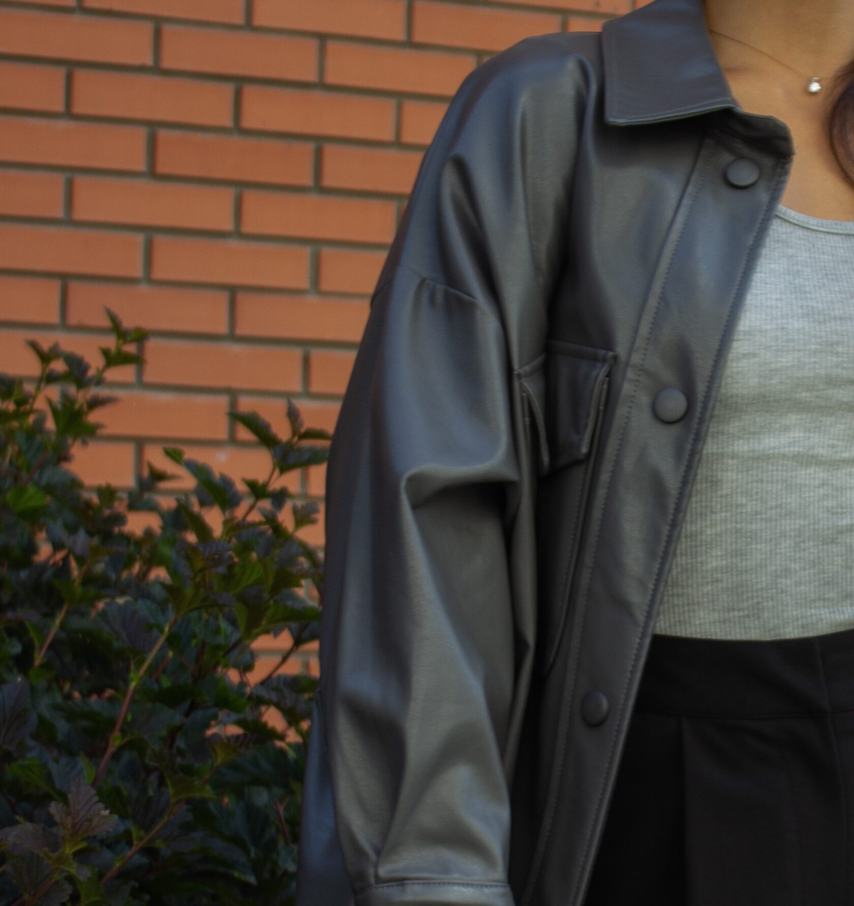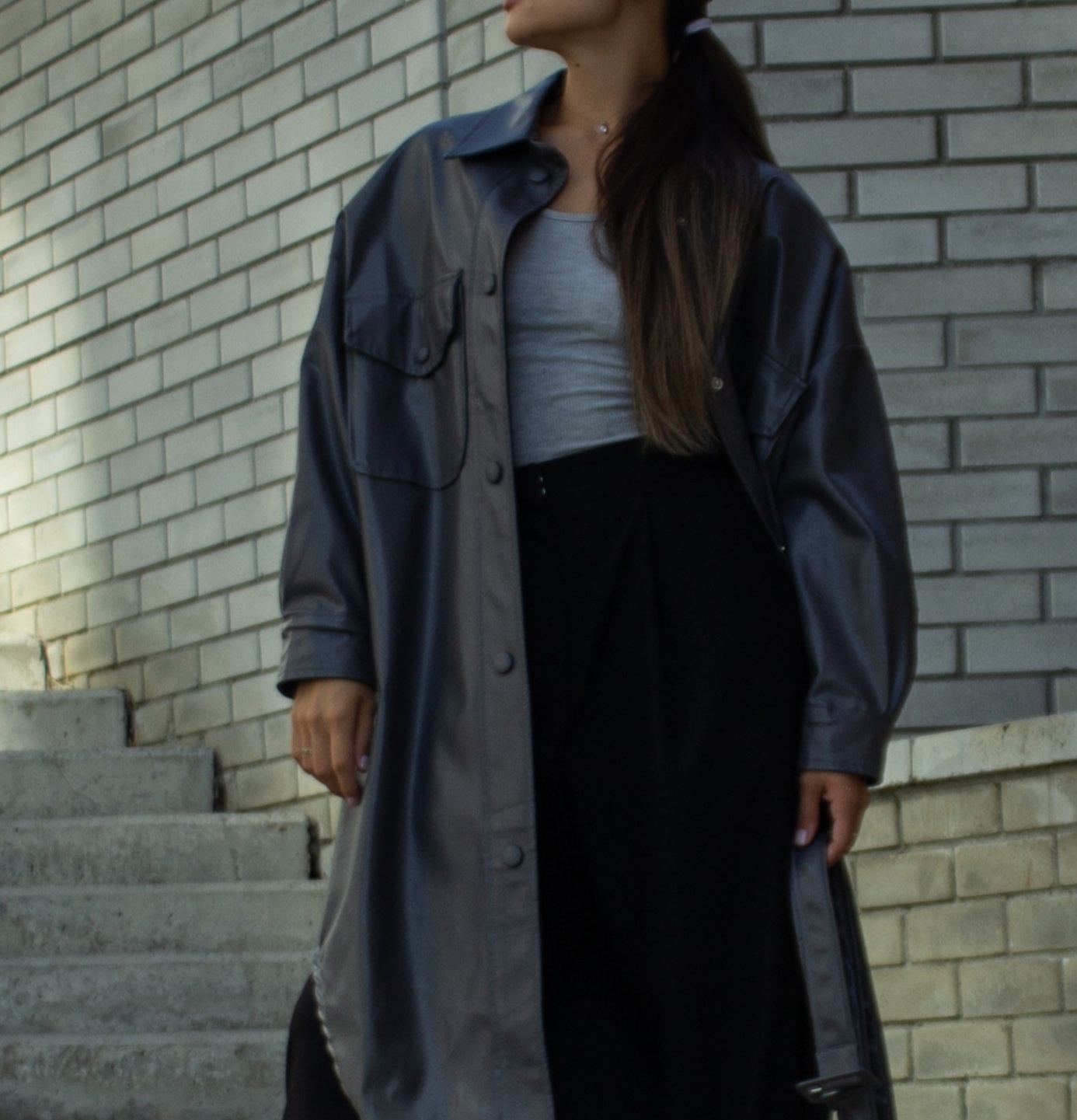 Рубашка миди из экокожи