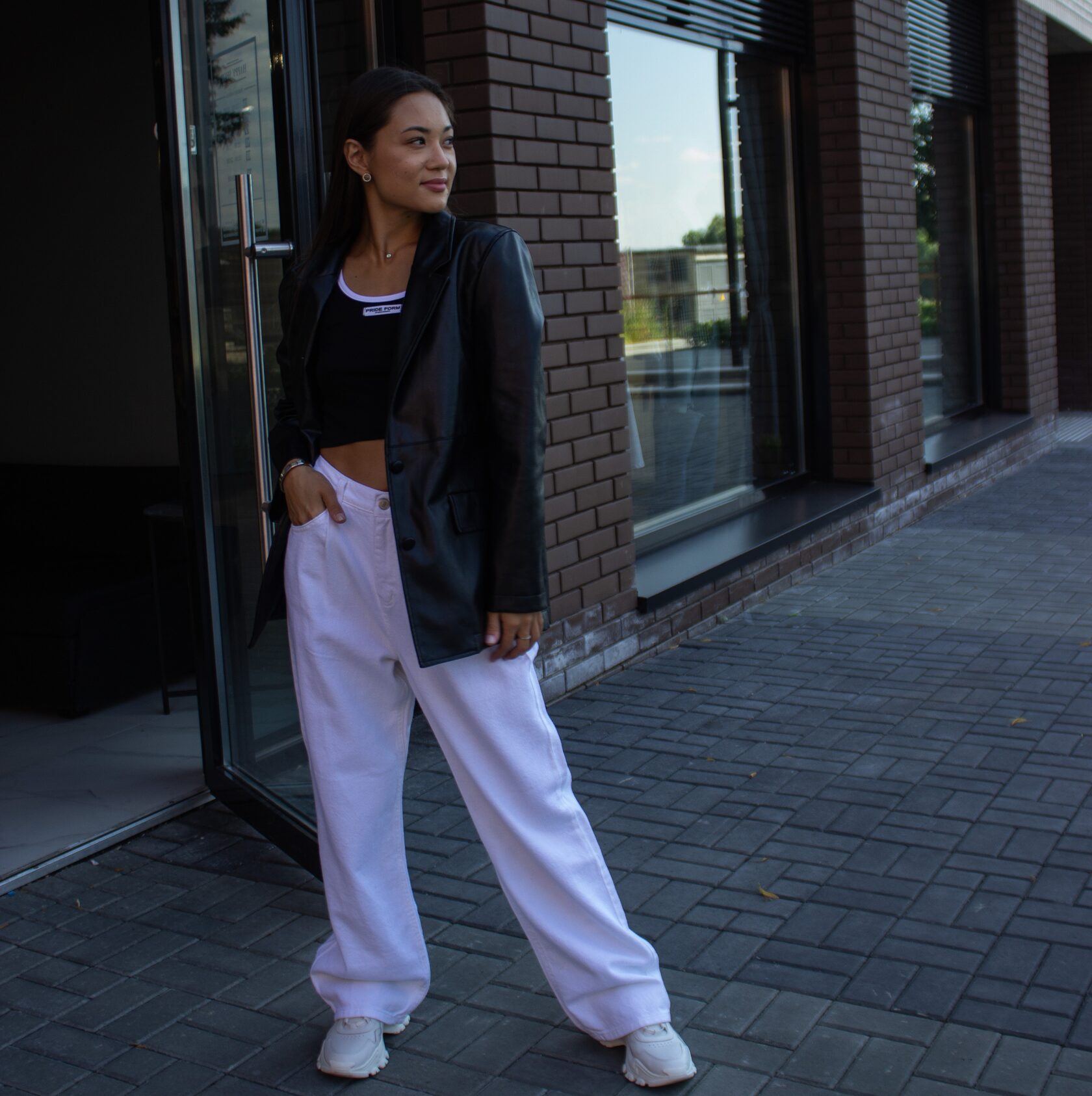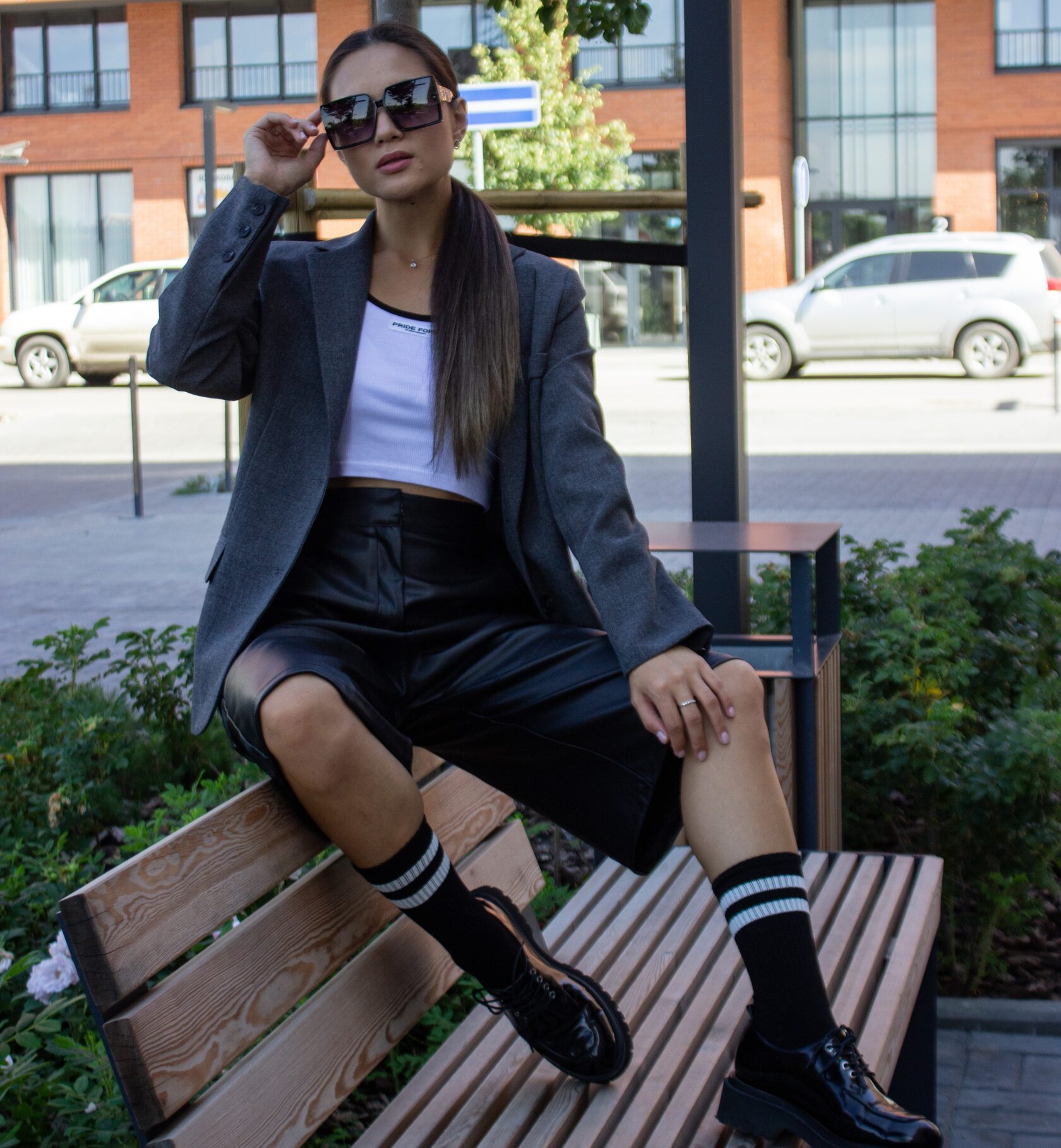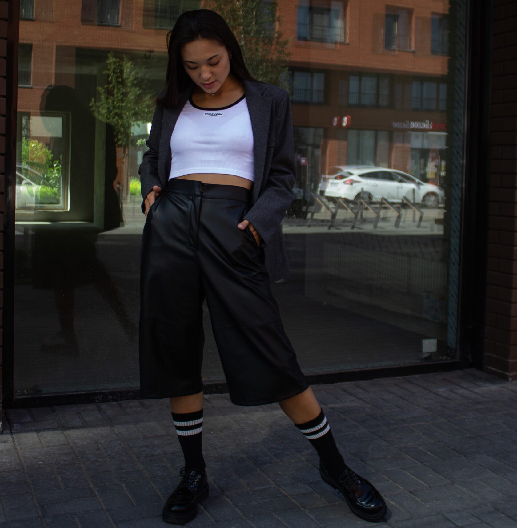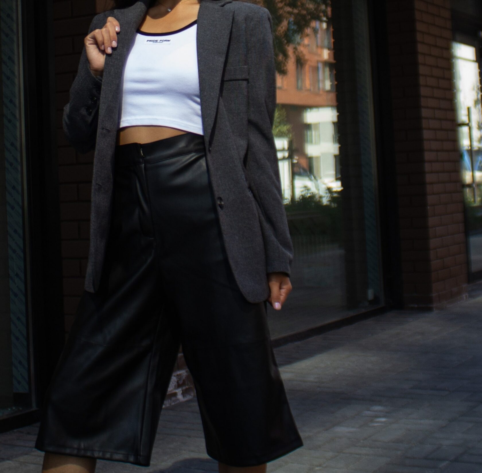 Кюлоты (эко кожа)/футболка/пиджак/носки
