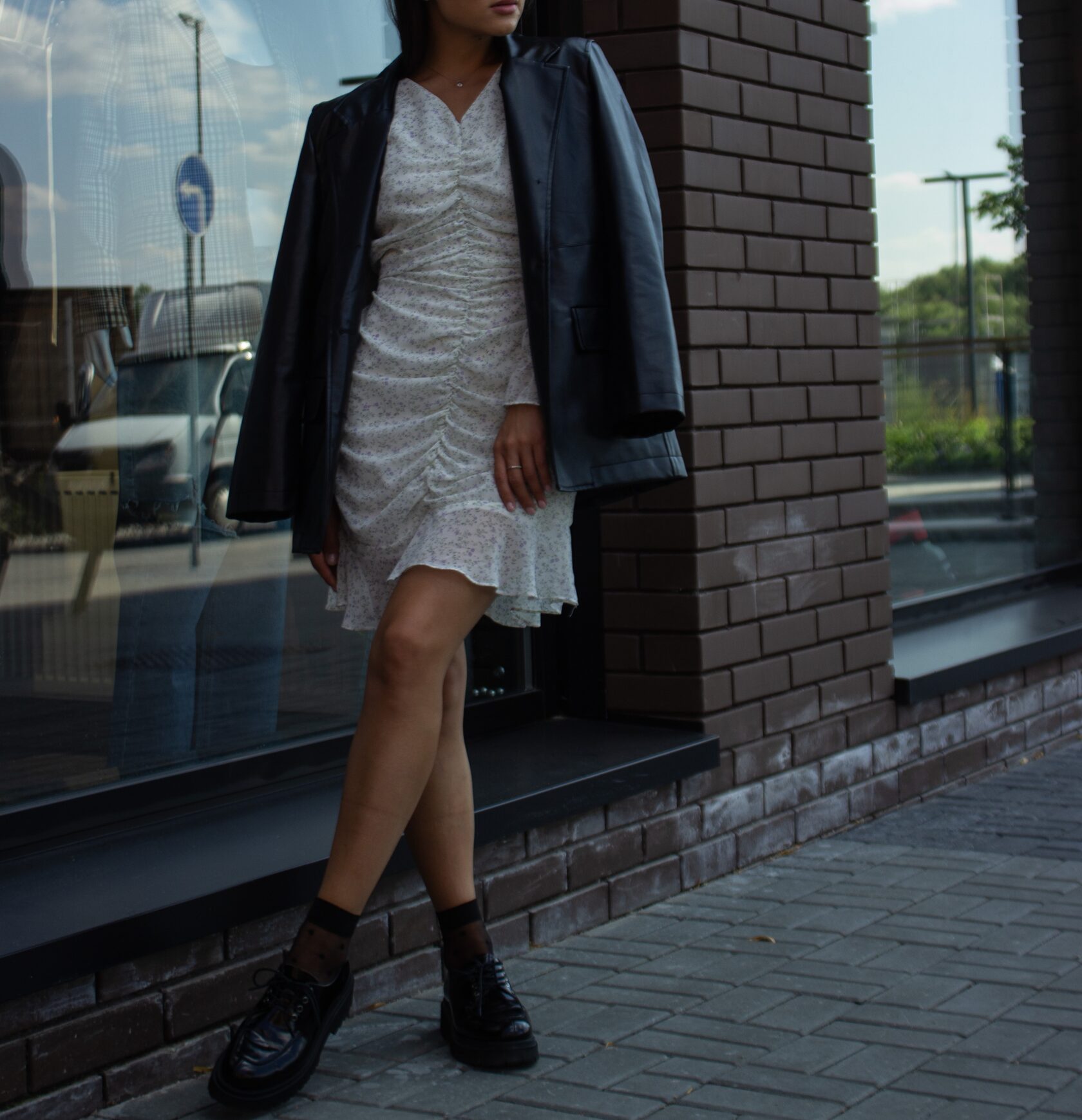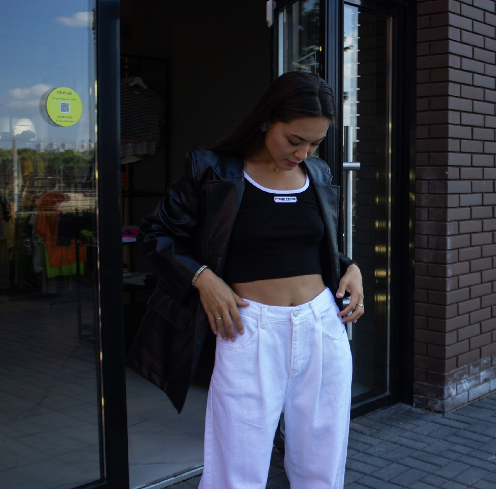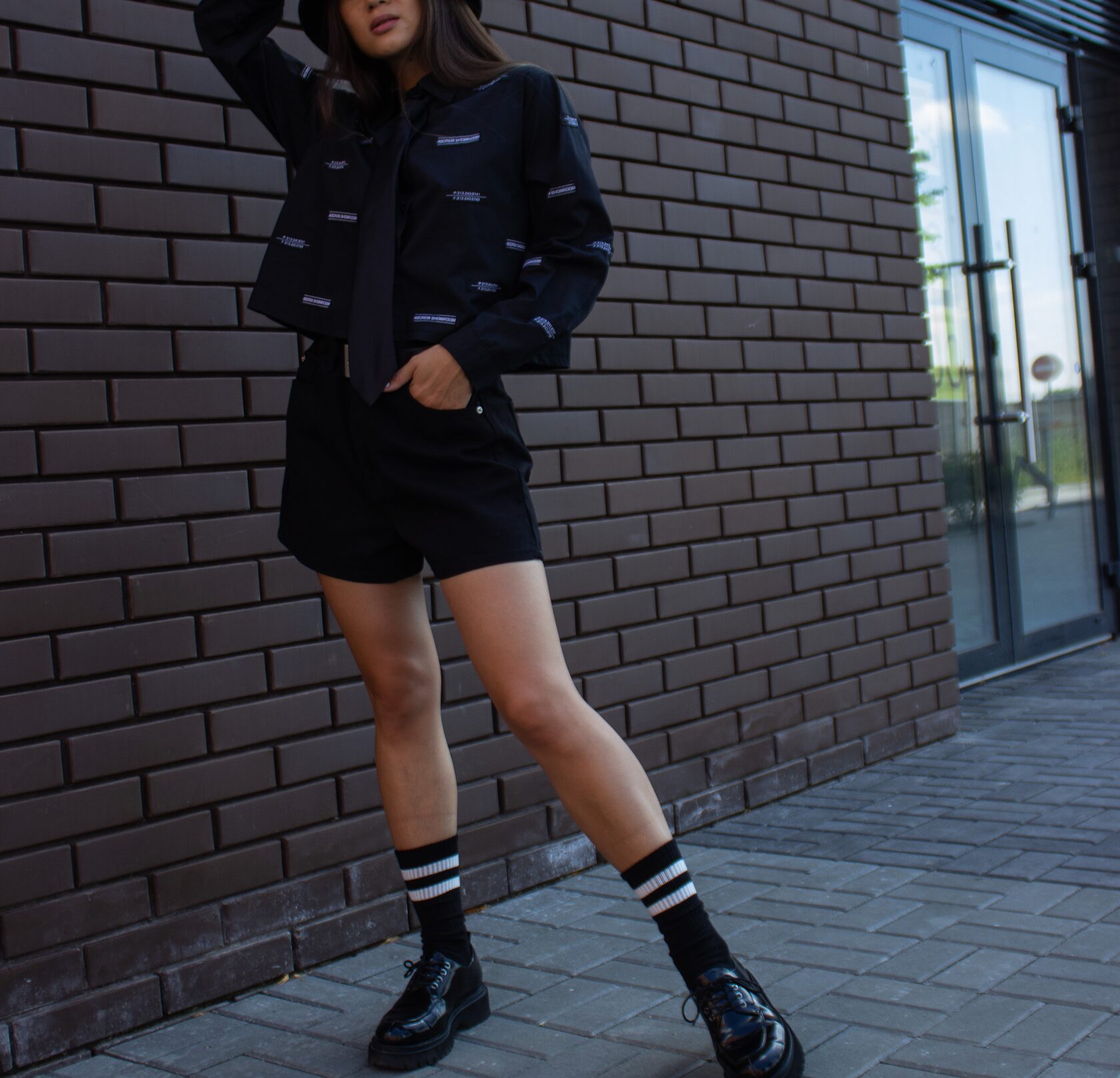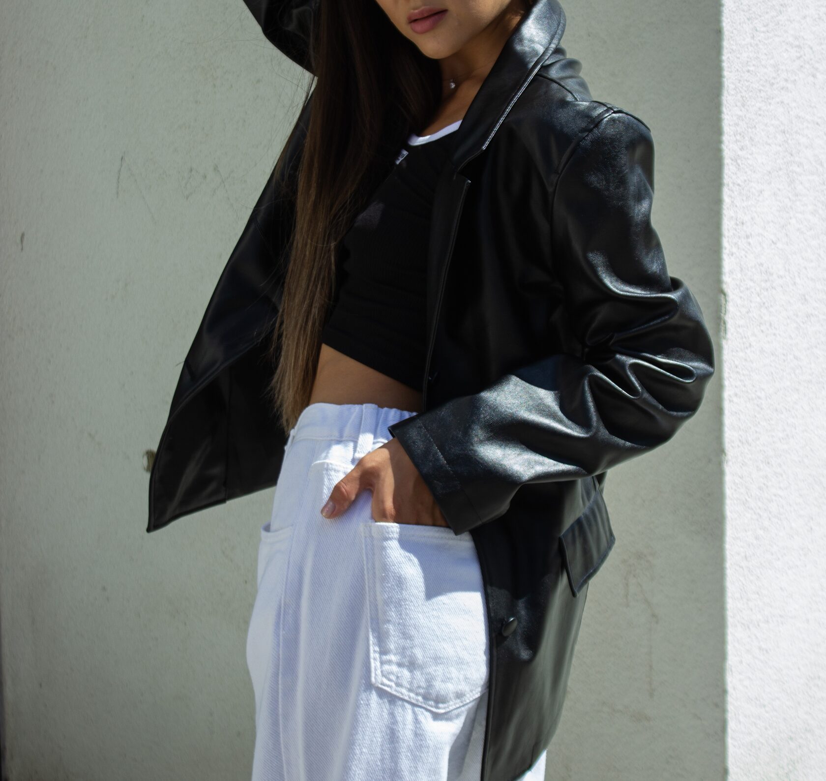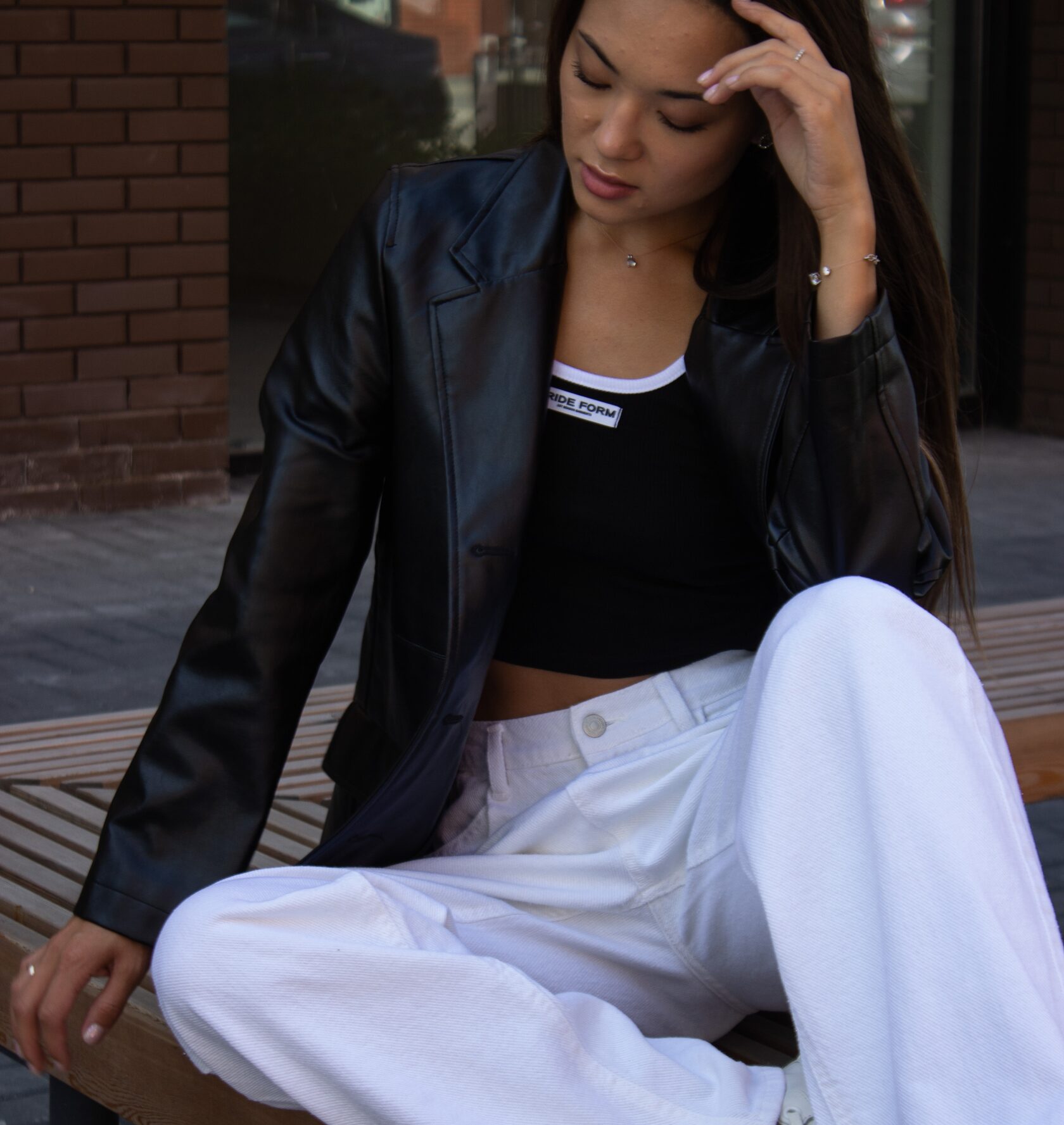 Кюлоты (эко кожа)/футболка/пиджак/носки