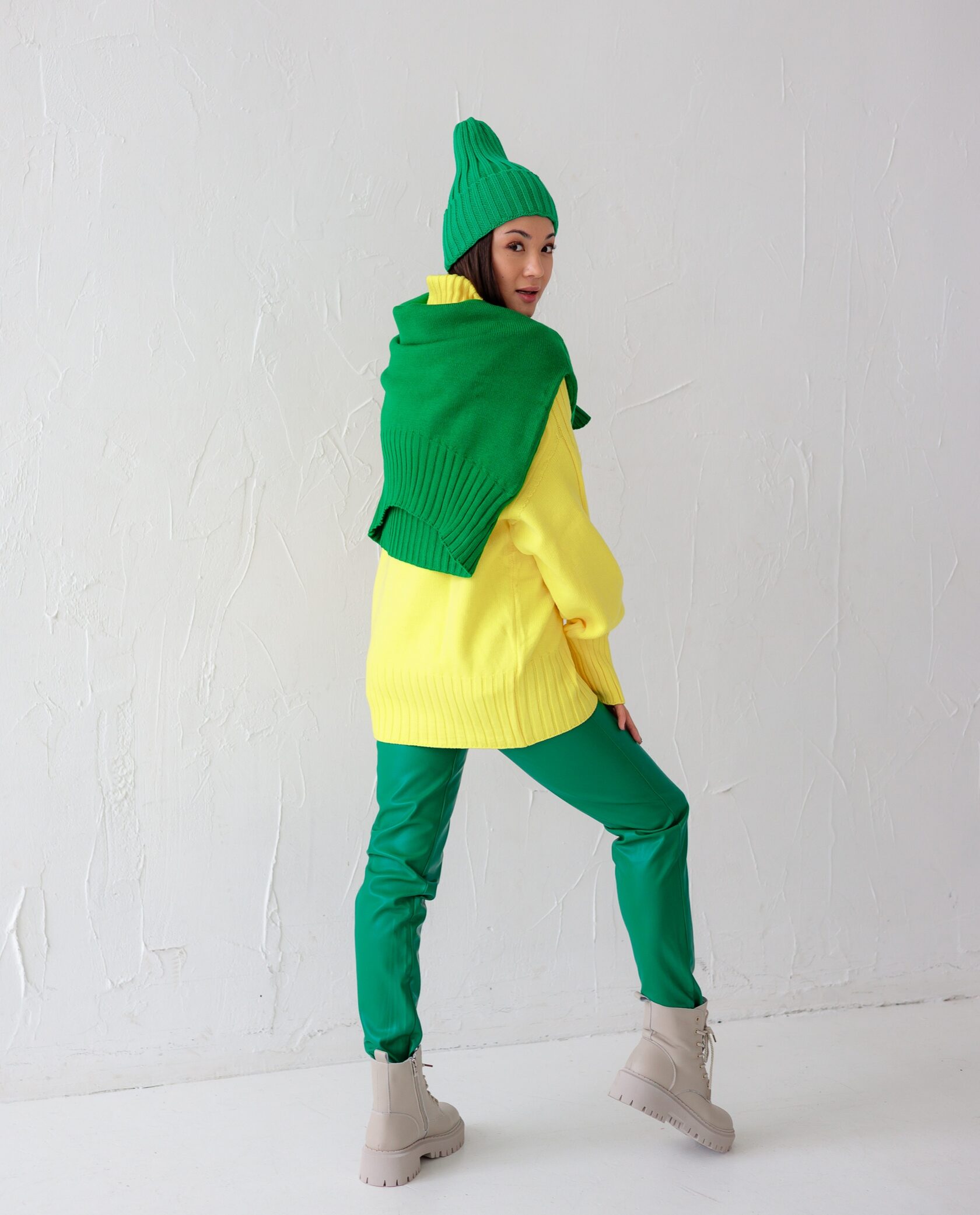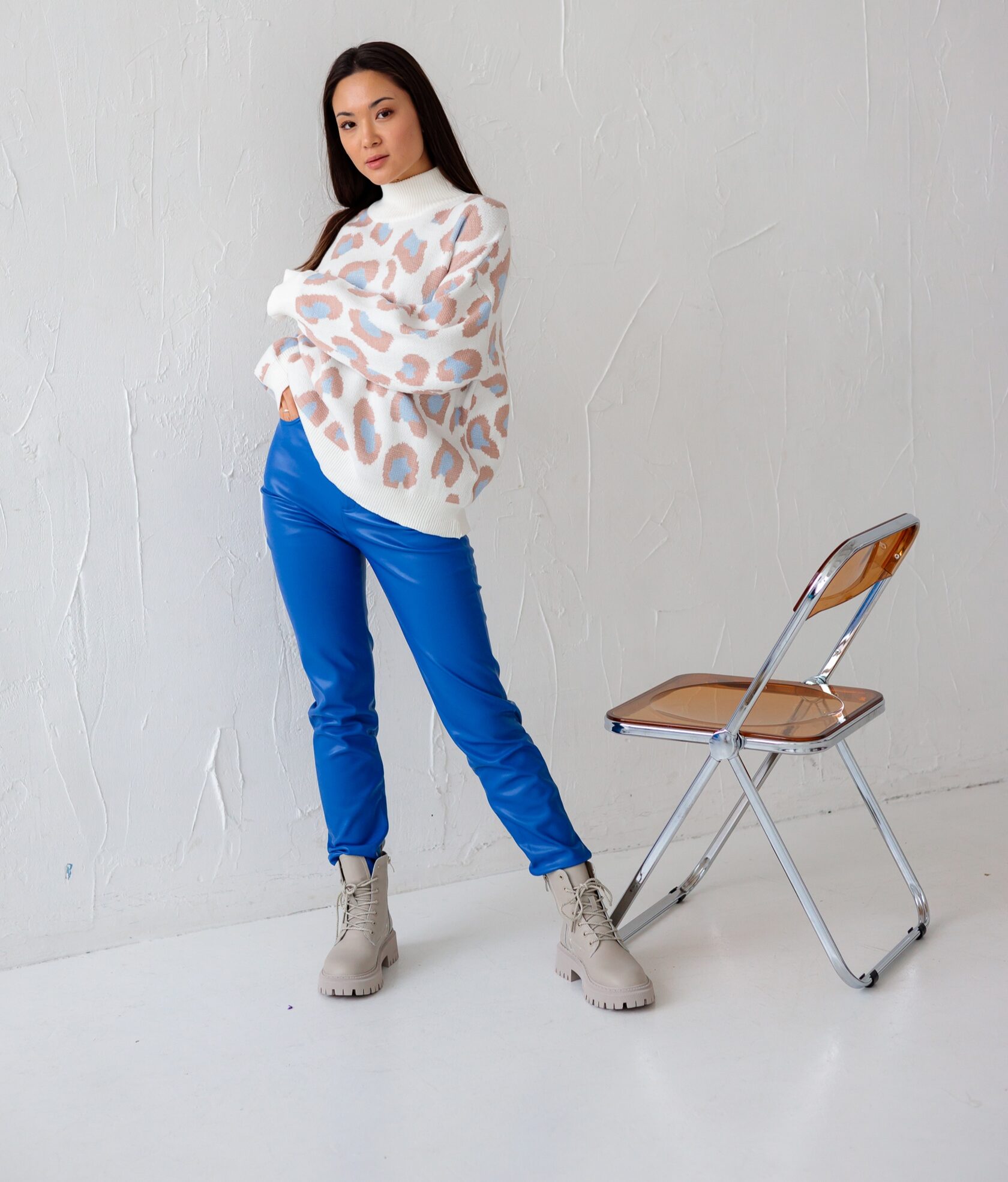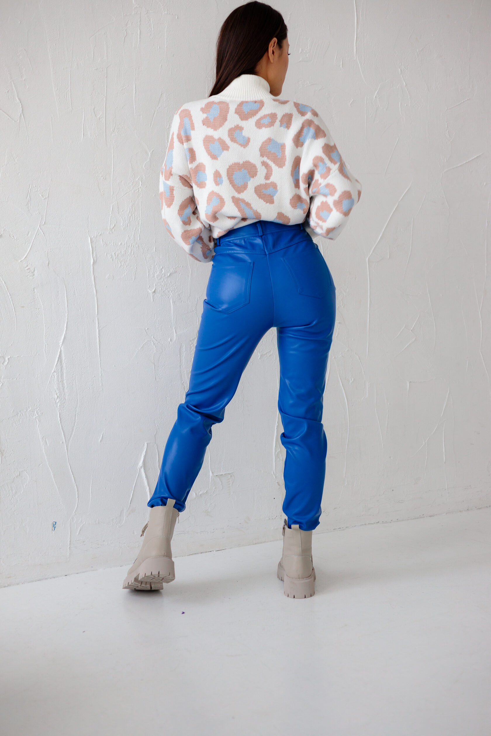 Брюки экокожа/свитер/ботинки