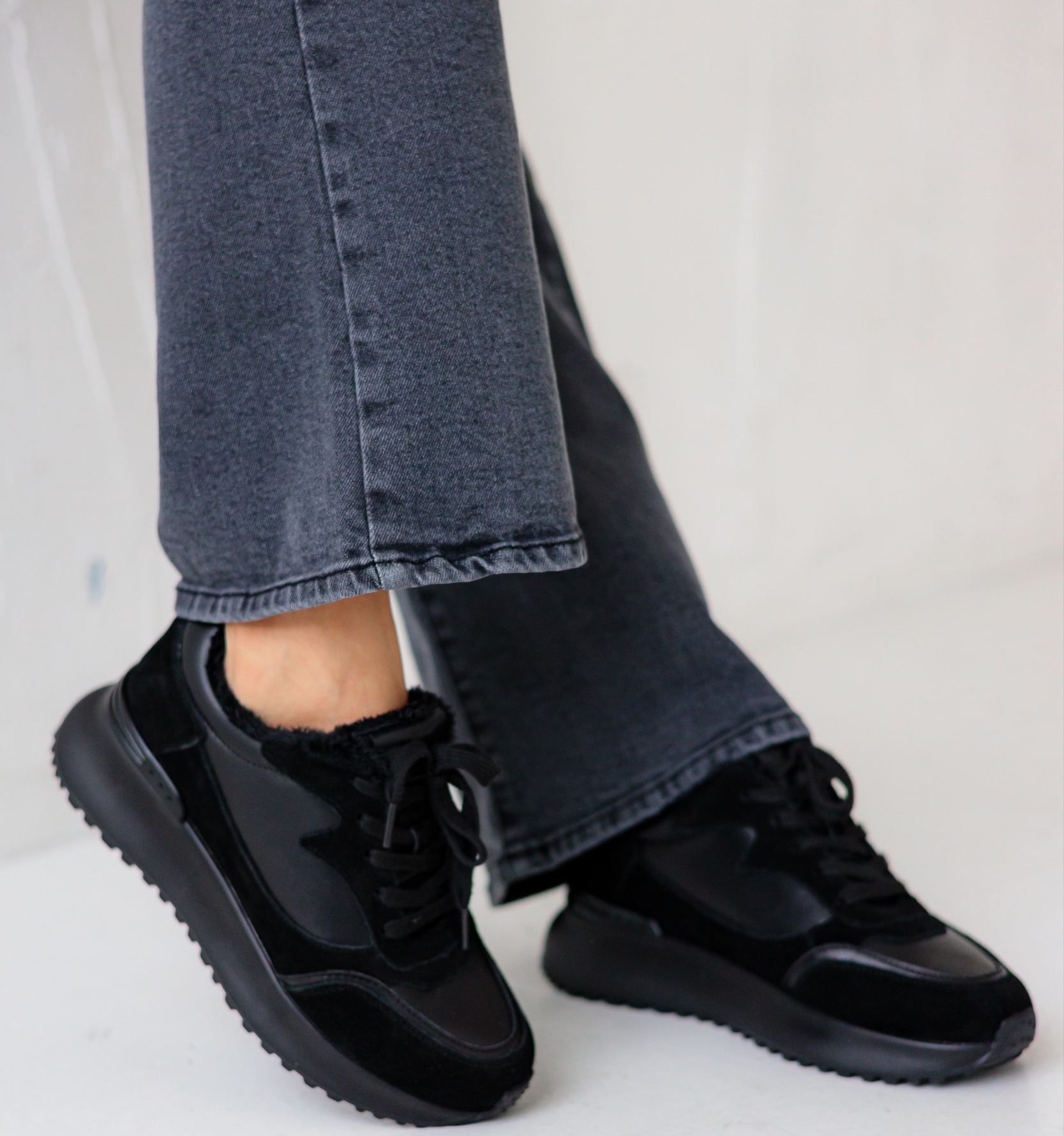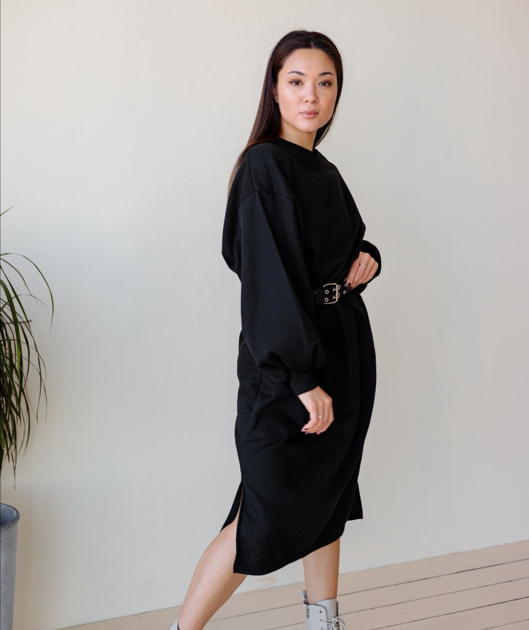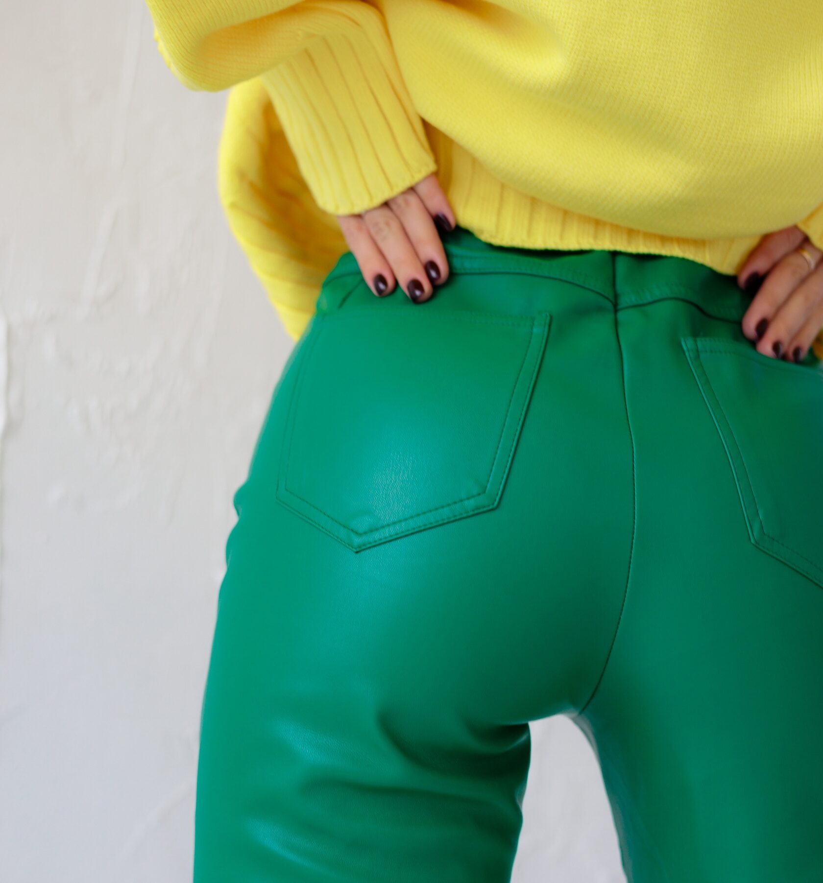Брюки экокожа/свитер/ботинки