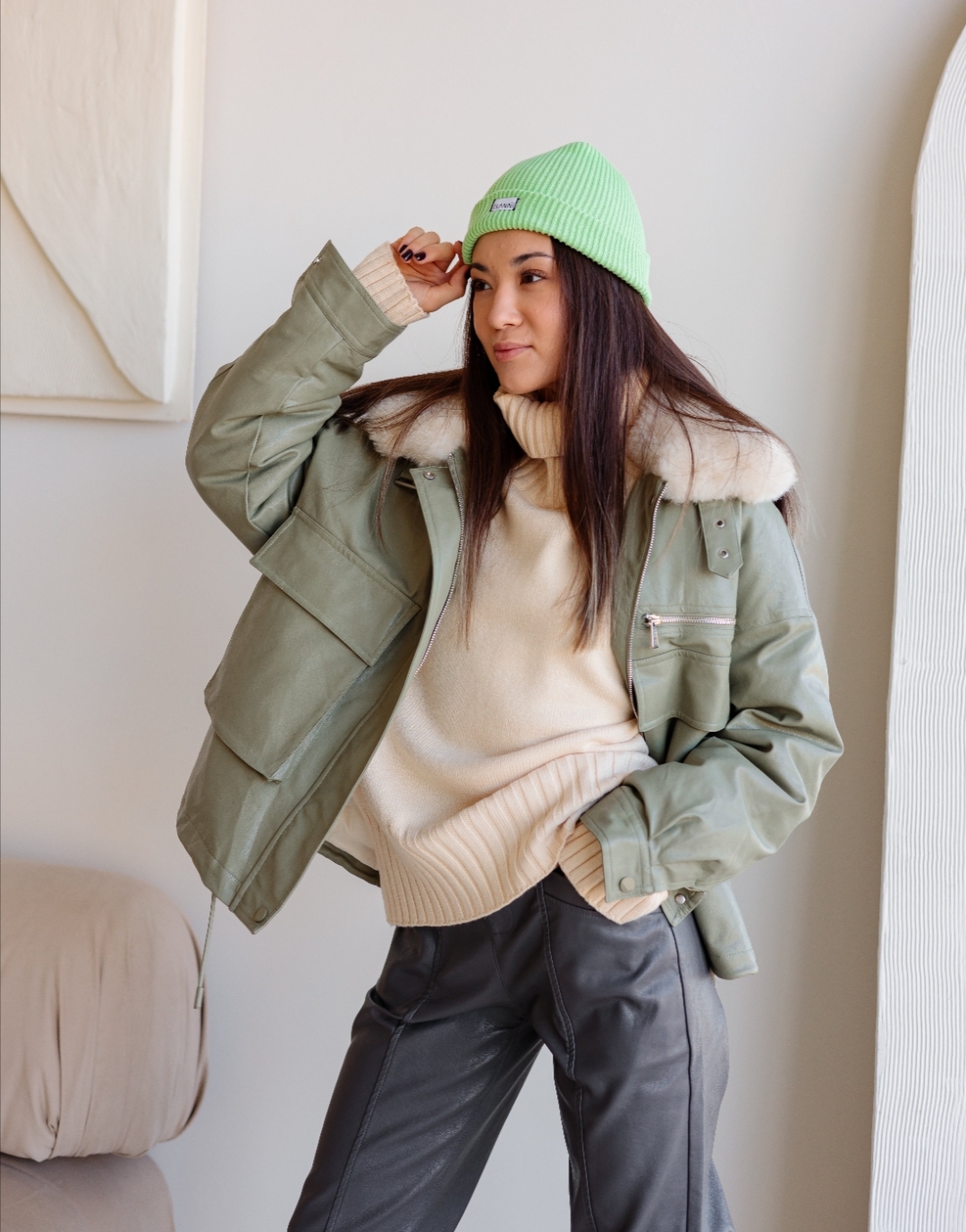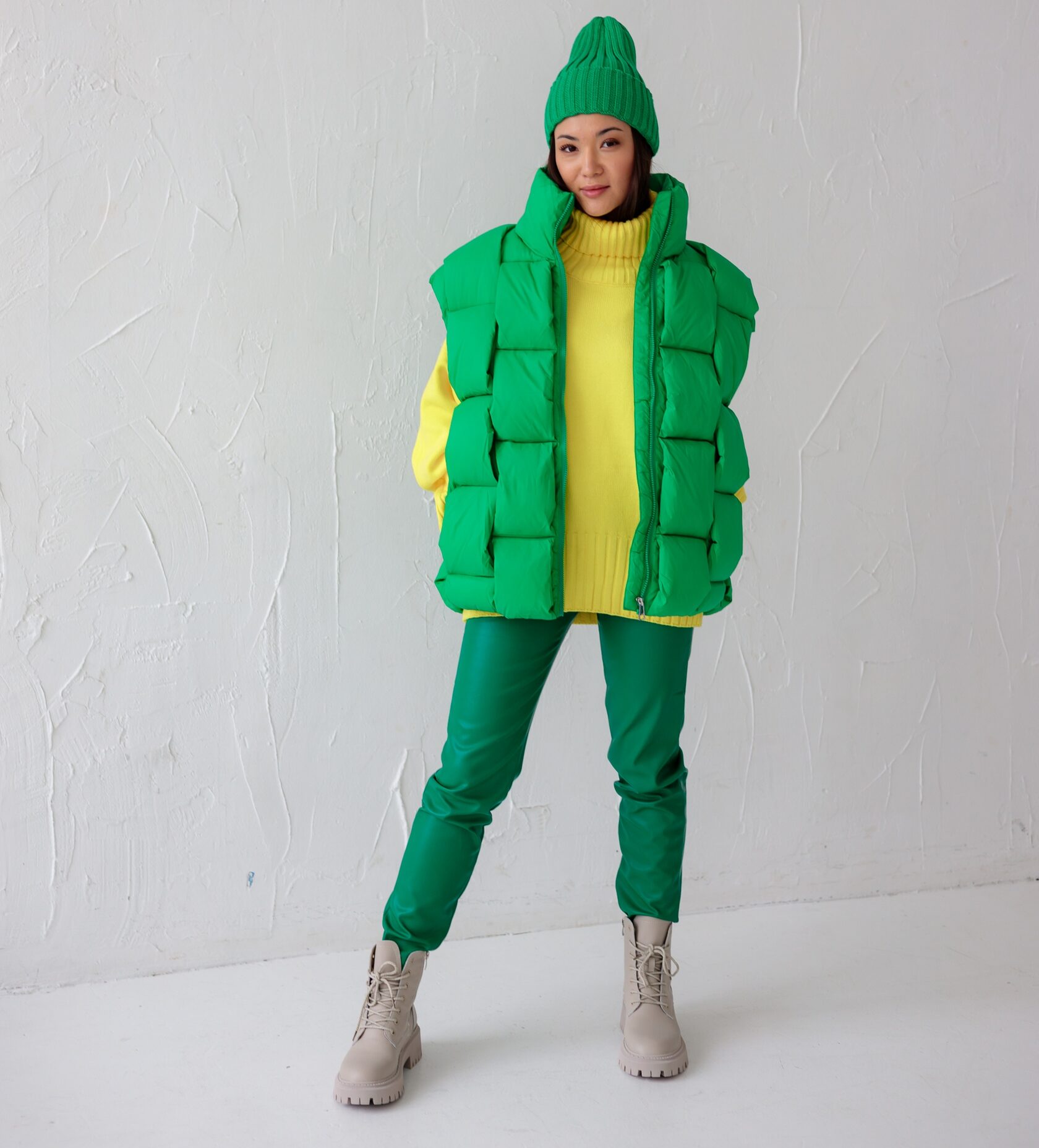 Жилет /свитер /брюки экокожа /шапка / ботинки